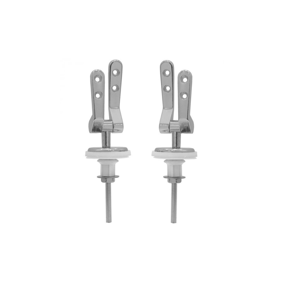 Csavarpántos WC tetőre felszerelhető szerelvény. Fém WC zsanér szerelvény szett felhasználható, minden olyan WC tetőhöz, melynek kialakítása csavaros rögzítésű, és nem akasztós. A szerelés tartalmazza a zsanért és a rögzítéshez szükséges anyacsavarokat. Nálunk kínált WC tetőkhöz felszerelhető. A termék leírásánál vagy a termék fotónál fel van tüntetve.