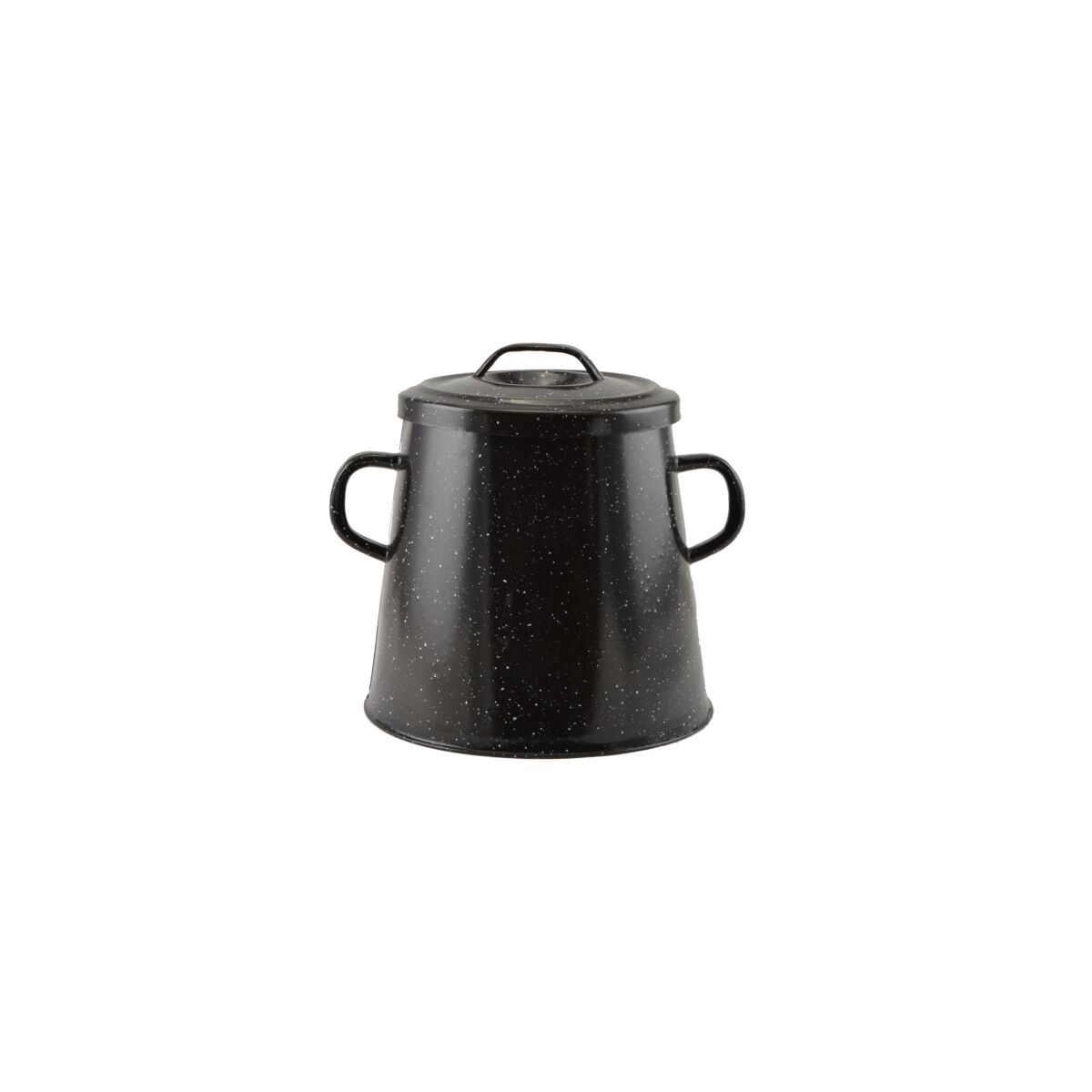 Méretei:28 cm magas fedő nélkül, 31 cm magas fedővel, 21 cm belső átmérőjű, 22 cm külső átmérőjű, 29 cm alsó átmérőjű, 32 cm szélessége füllel együtt