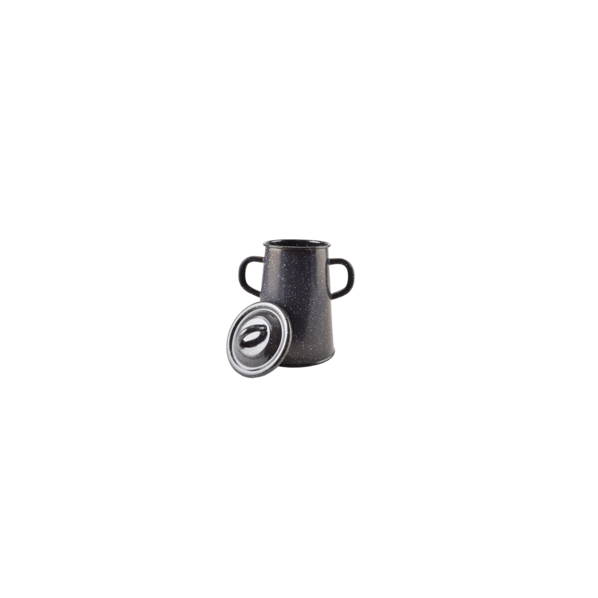 Méretei:19,5 cm magas fedő nélkül, 23 cm magas fedővel, 10 cm belső átmérőjű, 11 cm külső átmérőjű, 14,4 cm alsó átmérőjű, 20 cm szélessége füllel együtt
